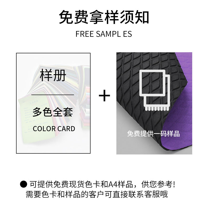 作为一家专业的 Neoprene manufacturer 和 neoprene fabric supplier,我们通常可以为潜在的商业客户提供小规格的免费样品(如A4大小或小样册),以便进行初步评估。要索取样品,您通常需要提供以下信息,以便我们为您准备最合适的选项: